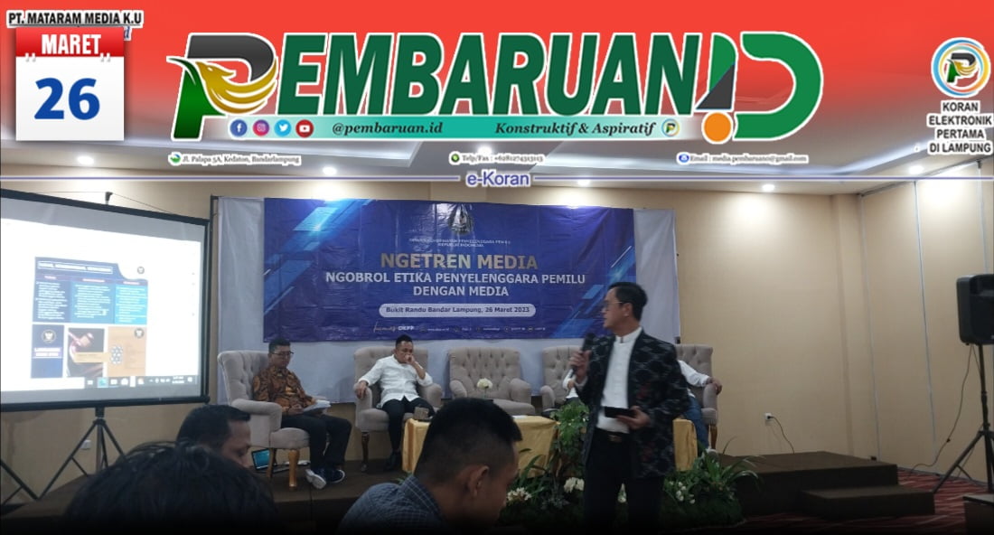 Hal tersebut ditegaskan Anggota Dewan Kehormatan Penyelenggara Pemilu (DKPP) RI, Muhammad Tio Aliansyah saat Ngobrol Etika Penyelenggara Pemilu Dengan Media (Ngetren Media), di Bukit Randu, Bandar Lampung, Minggu (26/03/2023).