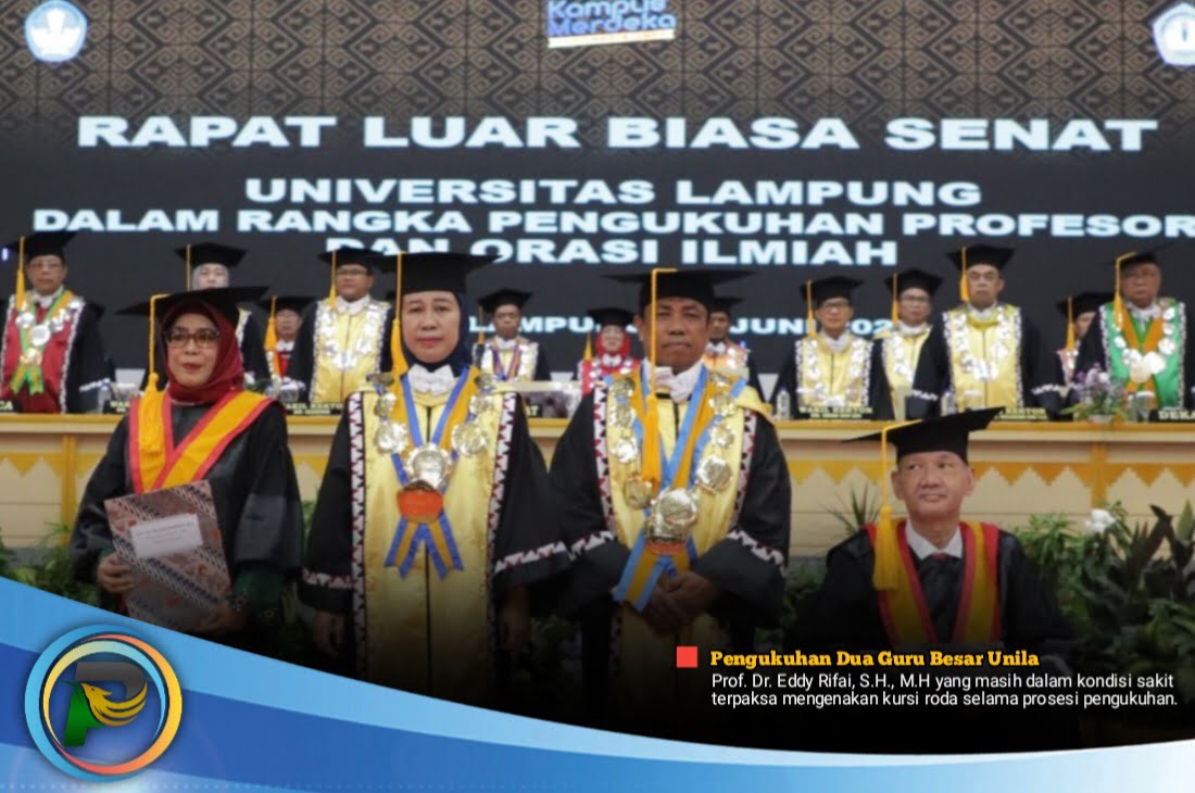 Selain Prof Eddy, prosesi yang digelar di Gedung Serba Guna (GSG) Unila itu juga mengukuhkan guru besar FH Unila lainnya, yaitu Prof. Dr. Nunung Rodiyah M.A.