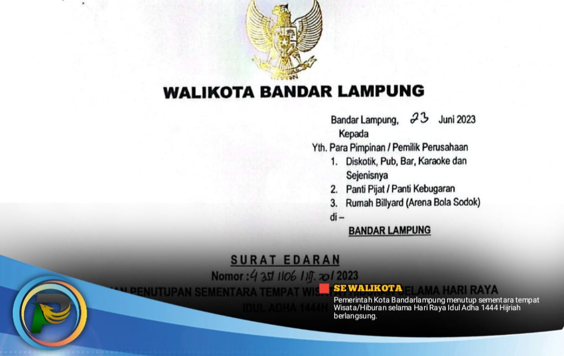 psiaceh.or.id/ – Pemerintah Kota Bandarlampung akan mencabut izin operasi tempat hiburan dan wisata yang masih buka saat Idhul Adha 1444H.