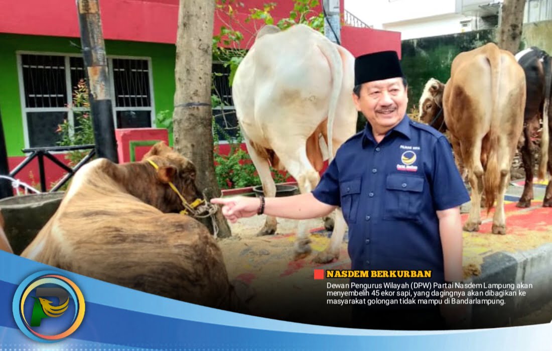 Menyambut Idul Adha 1444 Hijriah, Partai Nasdem diketahui akan memotong 45 ekor sapi, dengan rincian 15 ekor sapi untuk dibagikan ke masyarakat yang kurang mampu di Bandarlampung dan 2 ekor untuk kabupaten/kota se-Lampung.