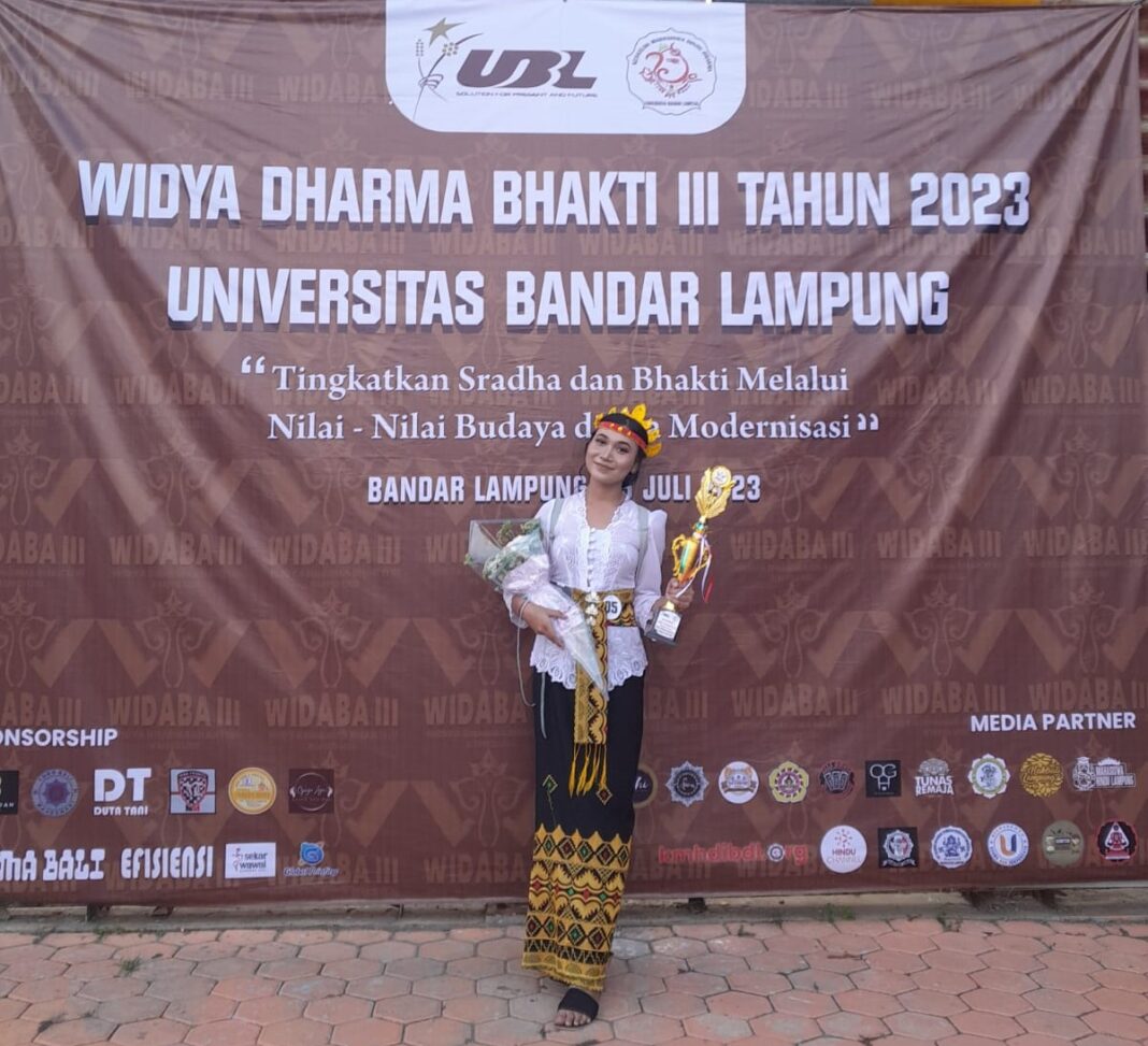 UKM Hindu Unila pada acara yang berlangsung di kampus UBL Rabu, 5 Juli 2023 ini berhasil membawa pulang trofi juara 1 Dharma Wacana kategori umum yang diraih Ni Made Puspa Dewi.
