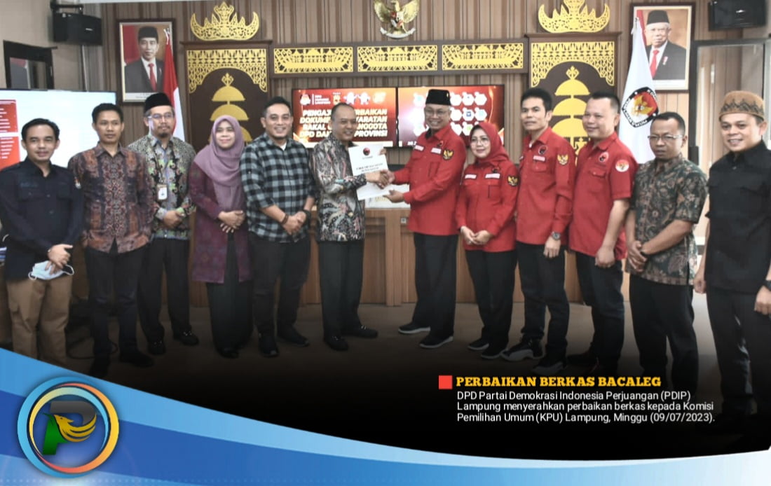 Hal tersebut ditegaskan Sekretaris PDIP Lampung Sutono usai menyerahkan perbaikan berkas kepada Komisi Pemilihan Umum (KPU) Lampung, Minggu (09/07/2023).