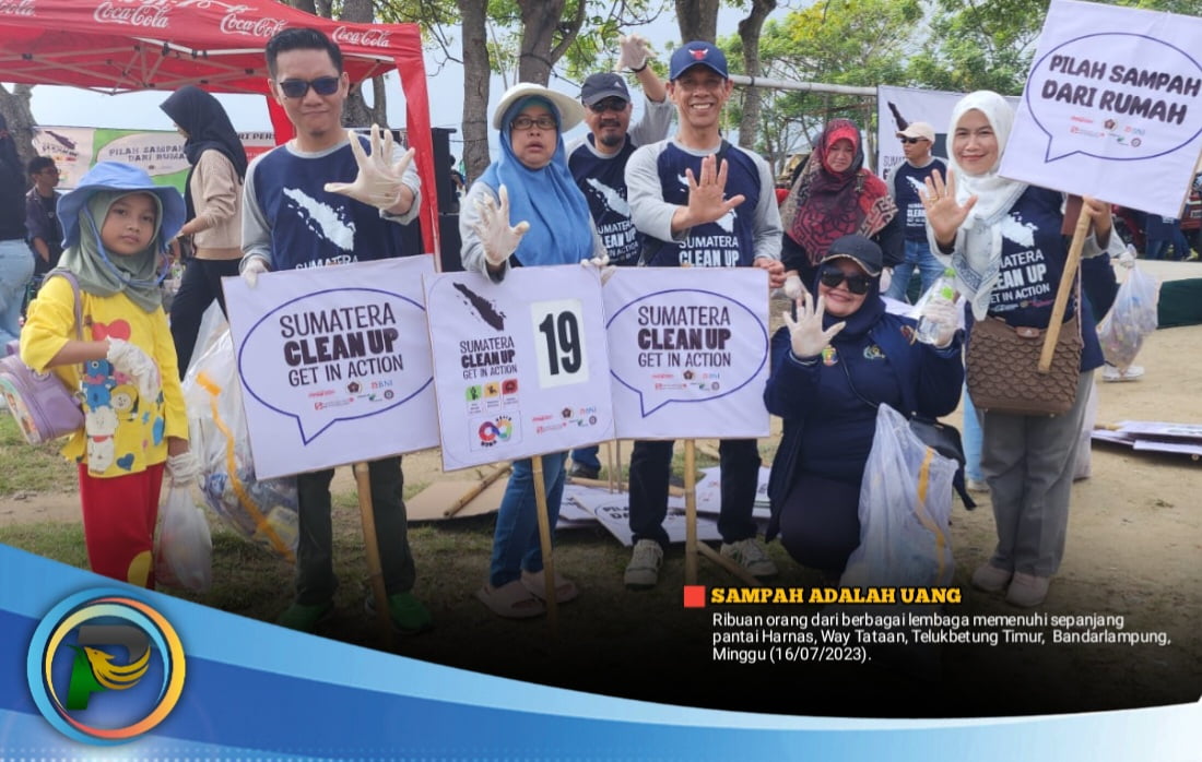 Kedatangan ribuan orang tersebut guna menyukseskan Sumatera Clean Up Get In Action yang digagas Persatuan Wartawan Indonesia (PWI) Lampung bekerjasama dengan PHRI, Coca Cola, HNSI dan sejumlah Bank Sampah.