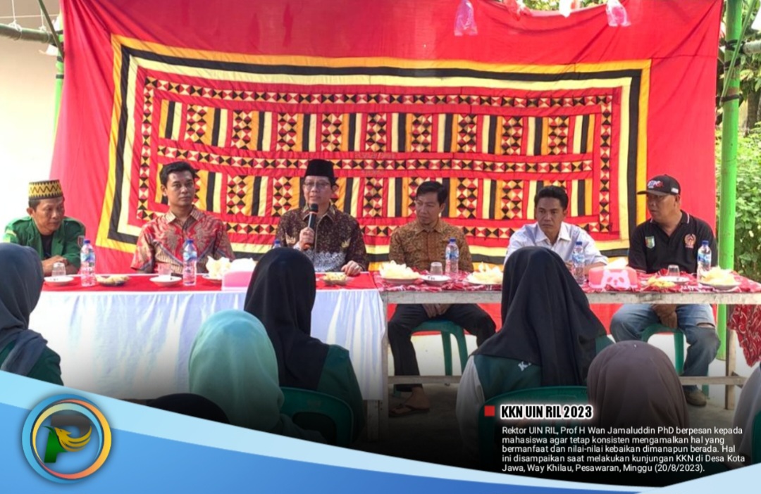 psiaceh.or.id/ – Rektor UIN Raden Intan Lampung Prof H Wan Jamaluddin PhD berpesan kepada mahasiswa agar tetap konsisten mengamalkan hal yang bermanfaat dan nilai-nilai kebaikan dimanapun berada. Hal ini disampaikan saat melakukan kunjungan KKN di Desa Kota Jawa, Way Khilau, Pesawaran, Minggu (20/8/2023).
